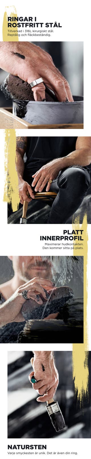 Aras | Silverfärgad Signetring i Rostfritt Stål med Inlagd Krysokoll för Lillfingret