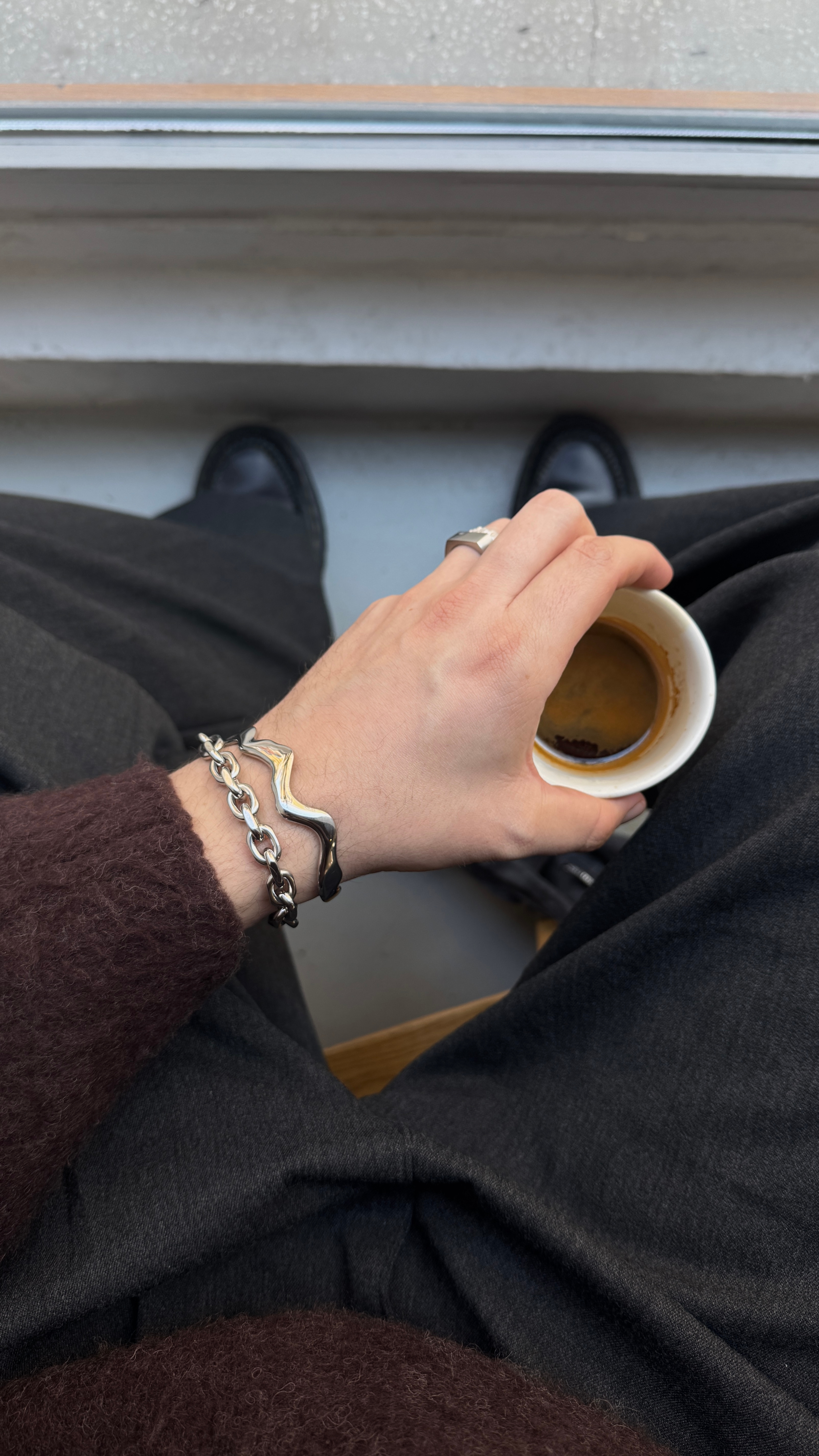 Molten | 5 mm silvertonat vågformat, kraftigt cuffarmband i rostfritt stål