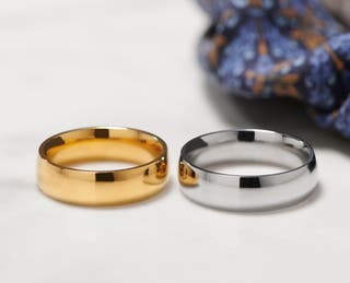 I dess naturliga färg ser det ut som en vigselring i silver eller platina utan den dyra prislappen. Samma gäller guldfärgade eller guldpläterade stålringar – stålets styrka med guldets utseende, utan att det kostar skjortan.