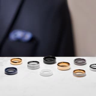 Trendhim har ett brett utbud av vigselringar för män i rostfritt stål, keramik, silikon och titan.