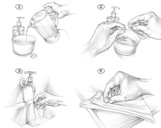 - Häl upp varmt vatten i en skål och lägg till några droppar mild tvål