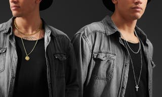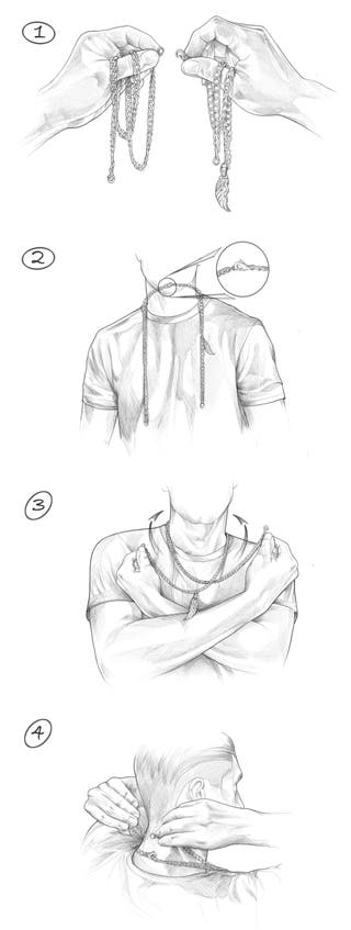 Det må vara fallet men det är bara Mr. T som kan täcka varje millimeter av sitt bröst med guld. En tjock kedja kommer dränka allt annat runt det, vilket gör att de finare detaljerna och hängsmyckena ser ut som något du bara lade till. När du bär halsband i lager, välj lättare produkter, tunnare kedjor och mindre hängsmycken. Din mittpunkt bör vara en "mellan"-uppmärksamhetsdragare och allt annat ska vara ett diskret komplement till det.