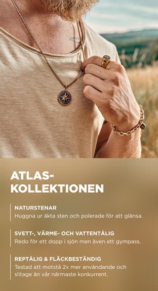 Välj färg - Atlas | Guldfärgat Halsband i Rostfritt Stål med Roterande Hängsmycke Världskarta i Azurmalakit