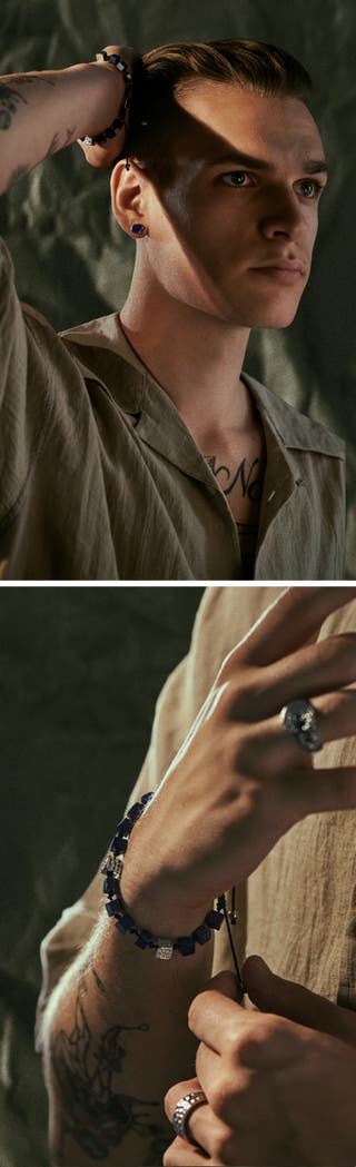 Orphic | Lapis Lazuli & Silverfärgat Rostfritt Stål-armband