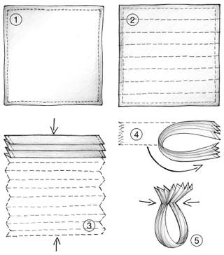 Den här stiliga dragspelsvikningen påminner lite om vårblommor som slår ut i din ficka. Du kan vara crazy och använda ljusa färger och djärva tryck för att få en mer lekfull känsla. En bröstnäsduk i stärkt bomull är det bästa tyget för den här vikningen.