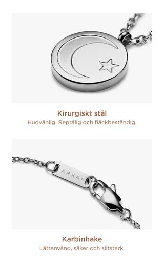 Unity | Silverfärgat Halsband i Rostfritt Stål med Runt Hängsmycke med Stjärna och Månskära